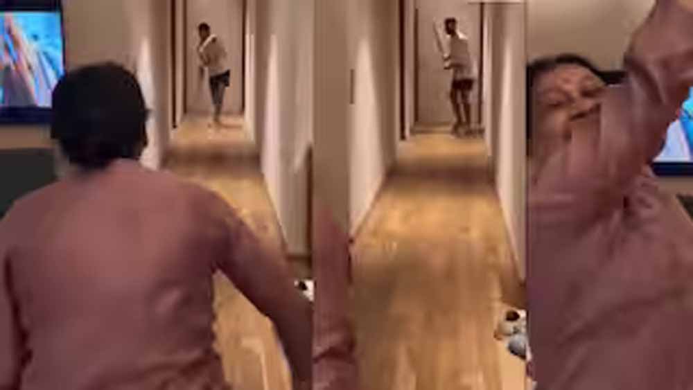 एक्स पर शेयर किए गए वीडियो में दिख रहा है कि श्रेयर अय्यर घर की गैलरी में बल्लेबाजी कर रहे हैं और गेंदबाजी की कमान उनकी मां के हाथों में है। पहली गेंद फुल टॉस और अय्यर उसे खेलने में कामयाब होते हैं लेकिन दूसरी गेंद पर वह नाकाम हो जाते हैं। गेंद उनके बल्ले को चकमा देकर पीछे दीवार रूपी स्टंप से टकरा जाती है। उसके बाद तो उनका मां का सेलिब्रेशन भी देखने लायक है। वह दोनों हाथ हवा में उठाकर खुशी से कूदने लगती हैं। बोलती हैं- आउट।
