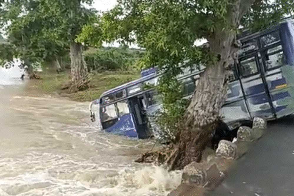 दमोह में ड्राइवर ने उफनते नाले से बस को पार कराने की कोशिश की। यूपी के जालौन जा रही बस अनियंत्रित होकर पुलिया से नीचे लटक गई। बस में सवार 6 यात्रियों को सुरक्षित बाहर निकाल लिया गया।