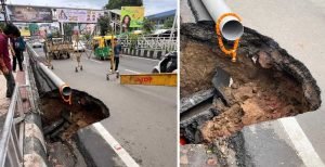 भोपाल में सड़क हादसा टला, एमपी नगर चौराहे पर अचानक धंसी जमीन