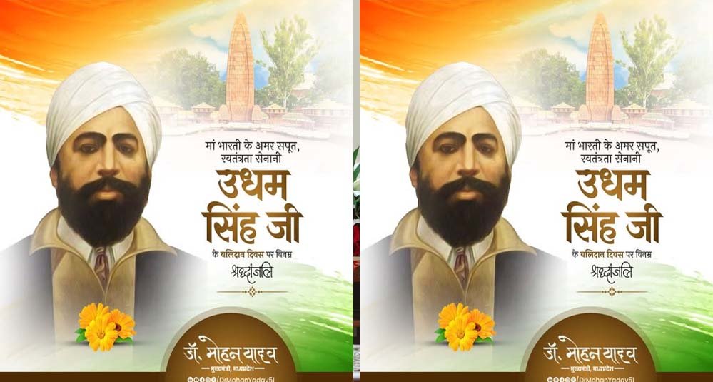 मुख्यमंत्री डॉ. मोहन यादव ने स्वतंत्रता सेनानी उधम सिंह के बलिदान दिवस पर उन्हें विनम्र श्रद्धांजलि अर्पित की। मुख्यमंत्री डॉ. यादव ने कहा कि अमर शहीद उधम सिंह ने अपने दृढ़ संकल्प से जलियांवाला बाग में निर्दोष निहत्थे देशवासियों की जान लेने वाले माइकल ओ'डायर को मौत के घाट उतारा था। सरदार उधम सिंह का जीवन युवाओं के लिए संकल्प शक्ति और मातृभूमि की भक्ति का प्रेरणादायक प्रतीक है।