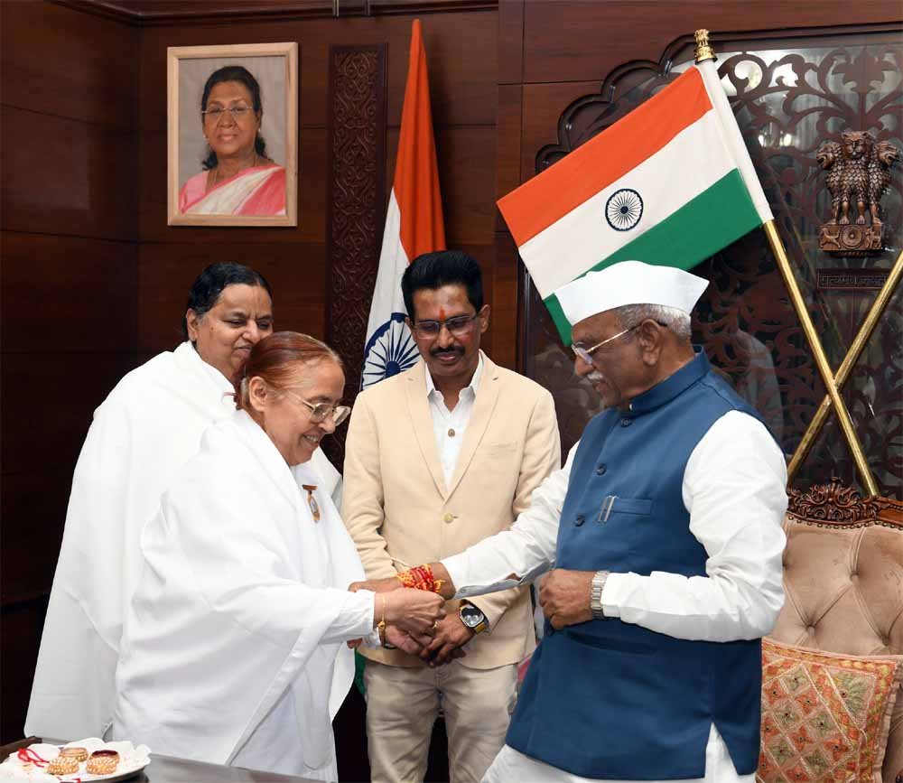 राज्यपाल श्री हरिभाऊ बागडे को शनिवार को राजभवन में एस.ओ. एस. बालग्राम की बालिकाओं और ब्रह्माकुमारीज की बहनो ने रक्षाबंधन पर रक्षासूत्र बांधा। राज्यपाल ने इस दौरान कहा कि रक्षाबंधन भारतीय संस्कृति का पावन पर्व है। यह पर्व परस्पर स्नेह और प्यार के साथ भाइयो द्वारा बहनों की सुरक्षा का संदेश देता है।