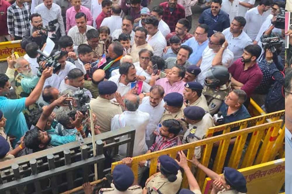पूर्व सीएम दिग्विजय सिंह मार्केट जाकर स्थिति देखना चाहते थे, लेकिन व्यापारियों के विरोध के चलते वहां जा नहीं सके. उन्होंने कहा, “यह संविधान के खिलाफ है. हिंदू-मुस्लिम एकता इंदौर की पहचान है. एकलव्य को गिरफ्तार किया जाए.” सराफा थाने पहुंचे दिग्विजय के साथ बड़ी संख्या में कांग्रेस कार्यकर्ता थे. वे बाबा साहब अंबेडकर की तस्वीर लेकर शिकायत करने आए. बोले, “यह सांप्रदायिक सद्भाव को तोड़ने की साजिश है. प्रशासन बीजेपी के इशारे पर काम कर रहा.”