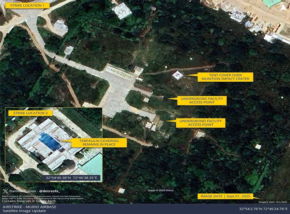 अब सितंबर 2025 की गूगल अर्थ तस्वीरों से नया खुलासा हुआ है. हमले वाली दोनों जगहें – गड्ढा और क्षतिग्रस्त हिस्से – अभी भी ढकी हुई दिख रही हैं. ऐसा लगता है कि पाकिस्तान ने तिरपाल या अन्य सामग्री से इन्हें छिपाया है, ताकि मरम्मत जारी रख सके. अन्य पाकिस्तानी एयरबेस जैसे सरगोधा में जून 2025 तक रनवे की मरम्मत हो चुकी थी, लेकिन मुरीदके में काम धीमा चल रहा है.