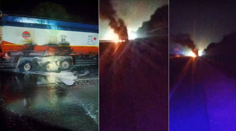 टैंकर के चार पहिए जलकर राख, टैंक सुरक्षित