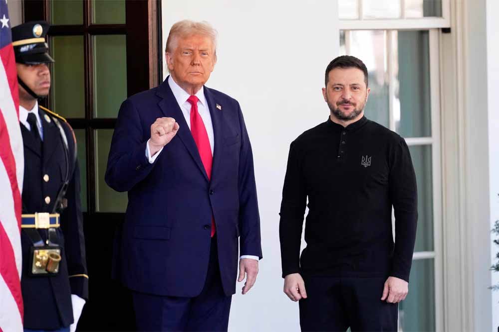 अमेरिका के राष्ट्रपति डोनाल्ड ट्रंप ने यूक्रेन के राष्ट्रपति वोलोदिमीर जेलेंस्की के साथ शुक्रवार को ‘व्हाइट हाउस' (अमेरिका के राष्ट्रपति का आधिकारिक आवास एवं कार्यालय) में लंबी बैठक के बाद यूक्रेन एवं रूस से युद्ध समाप्त करने का आह्वान करते हुए कहा कि ‘‘वे जहां हैं वहीं रुक जाएं।'' ट्रंप ने राष्ट्रपति पद का कार्यभार संभालने के बाद से यह युद्ध समाप्त नहीं होने को लेकर कई बार हताशा जताई है लेकिन उनकी ताजा टिप्पणी यूक्रेन के लिए यह संदेश प्रतीत होती है कि वह रूस के हाथों गंवाई भूमि को वापस लेने का प्रयास छोड़ दे।
