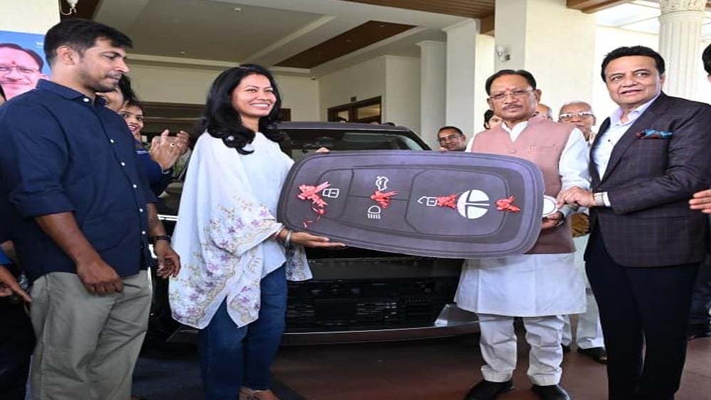 मुख्यमंत्री विष्णुदेव साय ने आज नवा रायपुर स्थित अपने निवास में आयोजित एक गरिमामय समारोह में भारतीय महिला क्रिकेट टीम की फिजियोथेरेपिस्ट और छत्तीसगढ़ की बेटी आकांक्षा सत्यवंशी को टाटा सिएरा कार उपहार स्वरूप प्रदान की। इस अवसर पर मुख्यमंत्री ने आकांक्षा को बधाई देते हुए कहा कि हमारी बेटियों ने विश्व कप जीतकर देश का गौरव बढ़ाया है। उन्होंने महिला क्रिकेट टीम के सम्मान और प्रोत्साहन के लिए टाटा मोटर्स द्वारा कार उपहार देने की इस पहल की सराहना की।