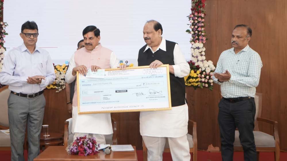 तदानुसार मुख्यमंत्री निवास में आयोजित कार्यक्रम में माननीय मंत्री, सूक्ष्म, लघु और मध्यम उद्यम मंत्रालय म.प्र. शासन एवं माननीय अध्यक्ष, मध्यप्रदेश लघु उद्योग निगम चेतन्य काश्यप द्वारा मध्यप्रदेश शासन के यशस्वी मुख्यमंत्री माननीय डॉ. मोहन यादव जी को राशि रू. 8.00 करोड़ अंतरिम लाभांश का चेक प्रदान किया गया।