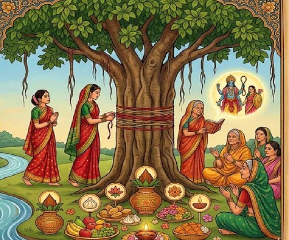 शास्त्रों में बरगद के पेड़ को पूजनीय माना गया है, क्योंकि इसमें ब्रह्मा, विष्णु और महेश तीनों देवों का वास होता है। इस वृक्ष की पूजा कर महिलाएं अपने पति के लिए लंबी उम्र और परिवार की समृद्धि मांगती हैं। पूजा के दौरान वट वृक्ष पर सूत का धागा लपेटना और 7 या 108 बार परिक्रमा करना विशेष फलदायी होता है।